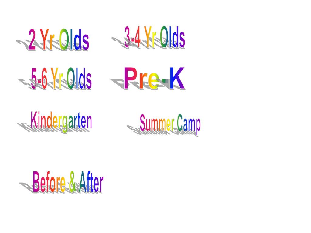 2 Yr Olds 3-4 Yr Olds 5-6 Yr Olds Pre-K Kindergarten Summer Camp Before & After