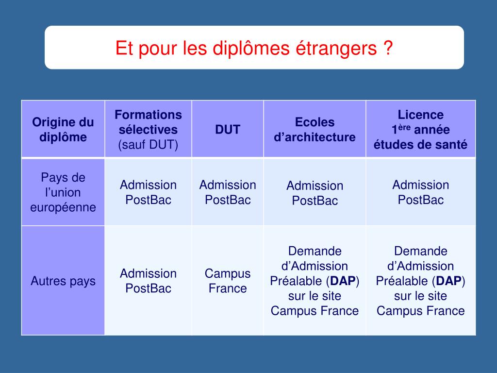 Quand ? 2 décembre ouverture du site d’information 20 janvier début des candidatures 20 marsfin des candidatures 2 avril date limite d’envoi des dossiers et de validation des candidatures 10 juin date limite de classement des vœux 23 juin 4 juillet Les 3 phases de réponse 14 juillet 5 juillet au 15 septembre Procédure complémentaire