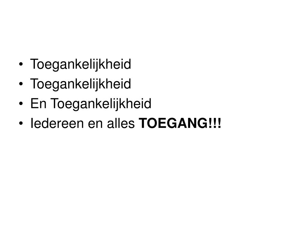 Toegankelijkheid • Toegankelijkheid • En Toegankelijkheid • Iedereen en alles TOEGANG!!!