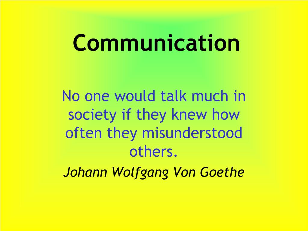 Communication No one would talk much in society if they knew how often they misunderstood others. Johann Wolfgang Von Goethe