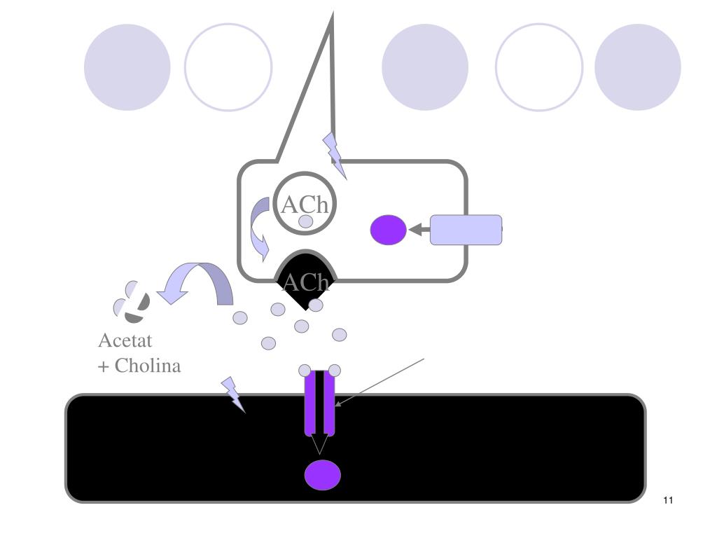 Generalităţi • Domeniul colinergic are ca mediator chimic: Acetilcolina (Ach). • Acetilcolina = amină biogenă sintetizată în organism din coline şi acetilcoenzima A sub acţiunea colinacetil-transferazei. • Ach, eliberată din terminaţia presinaptică se poate fixa de: • - receptorii colinergici → îi activează; • - acetilcolinesteraza → inactivarea Ach.