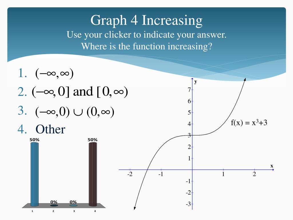 Graph 4 IncreasingUse your clicker to indicate your answer.Where is the function increasing? • Other