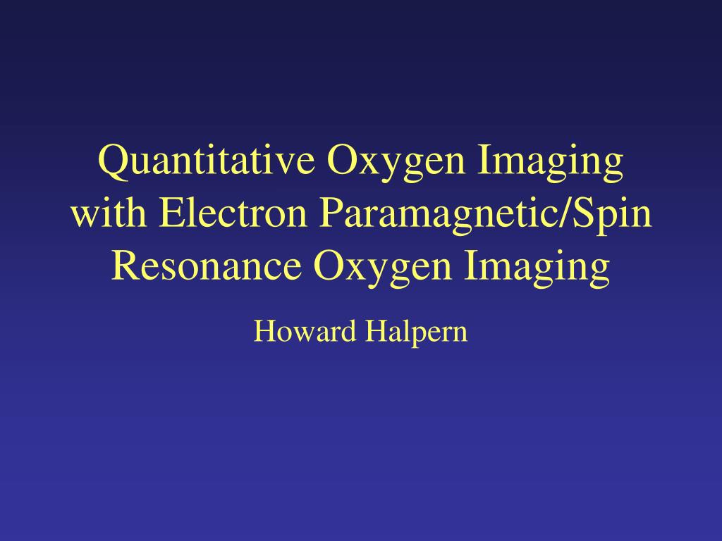 Quantitative Oxygen Imaging with Electron Paramagnetic/Spin Resonance Oxygen Imaging. Howard Halpern. Why EPR?. Bad News: native diffusible unpaired electrons: Rare Good News: rare native electrons mean no background signal