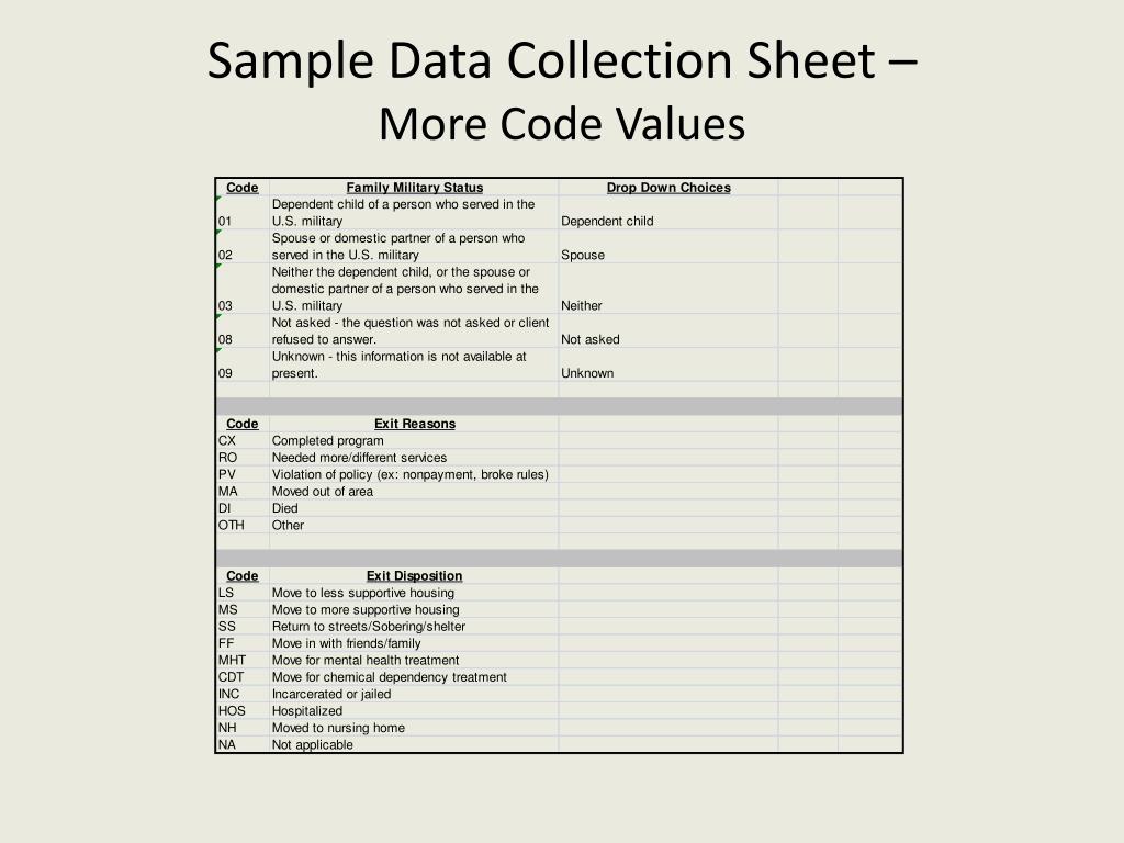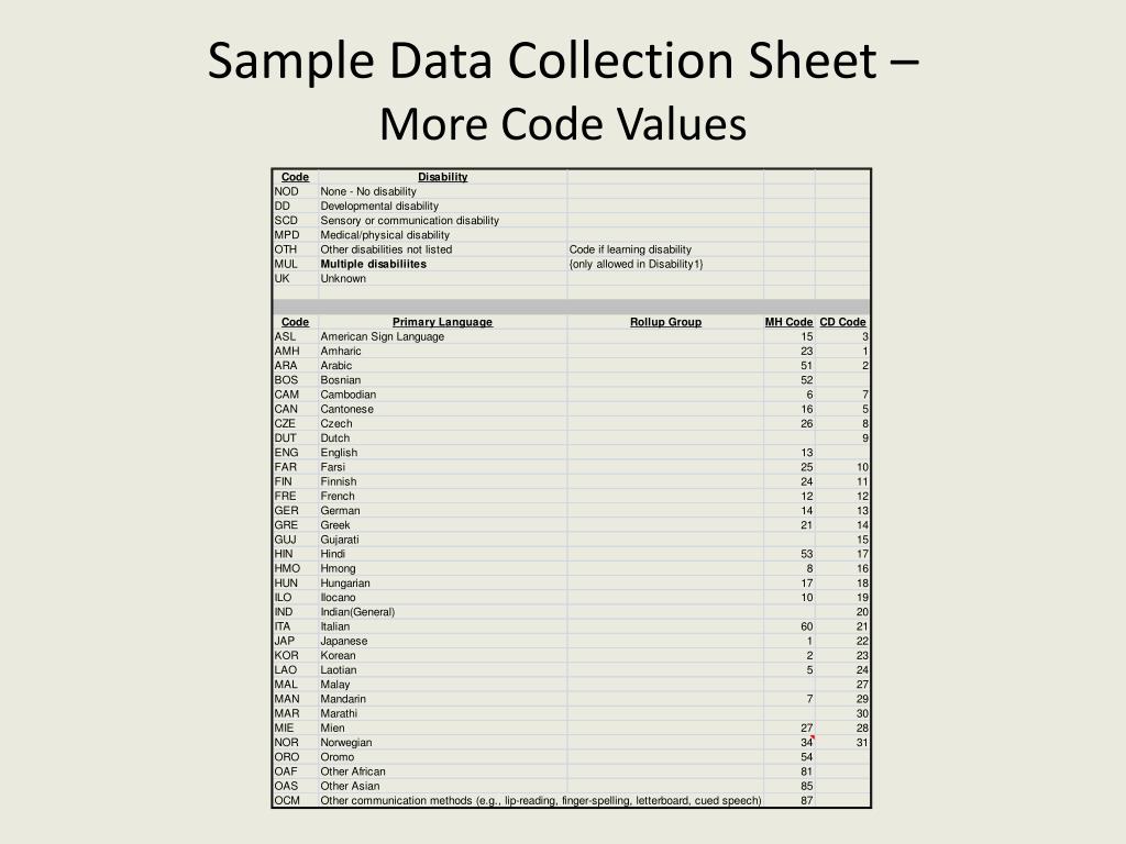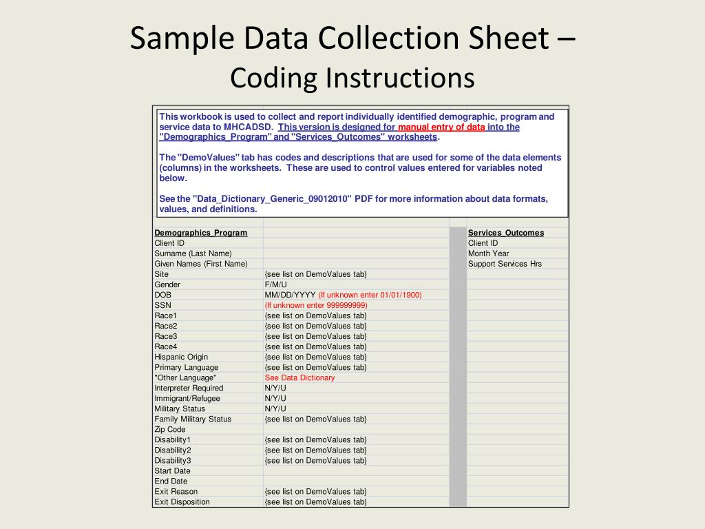 Sample Data Collection Sheet – Master List and Demographics