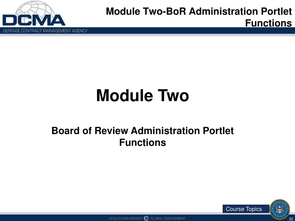 Course Topics. Course Topics. Note : Links will only work in PowerPoint's slide show view. . Course Objectives . At the end of this training you will be able to:. Module One-CMBRRS Portlets. Module One Contract Management Board of Review Reporting System Portlets.