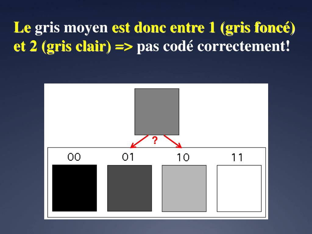 Le gris moyen est donc entre 1 (gris foncé) et 2 (gris clair) => pas codé correctement! ?