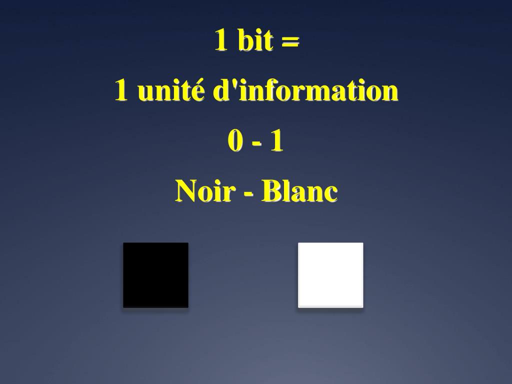 1 bit = 1 unité d'information 0 - 1 Noir - Blanc