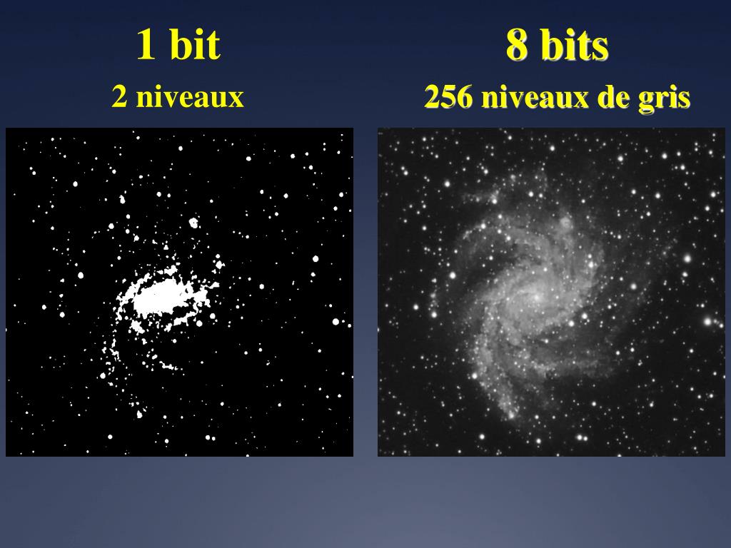 1 bit 2 niveaux 8 bits 256 niveaux de gris