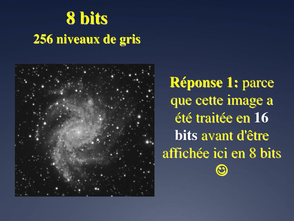 8 bits 256 niveaux de gris Réponse 1: parce que cette image a été traitée en 16 bitsavant d'être affichée ici en 8 bits