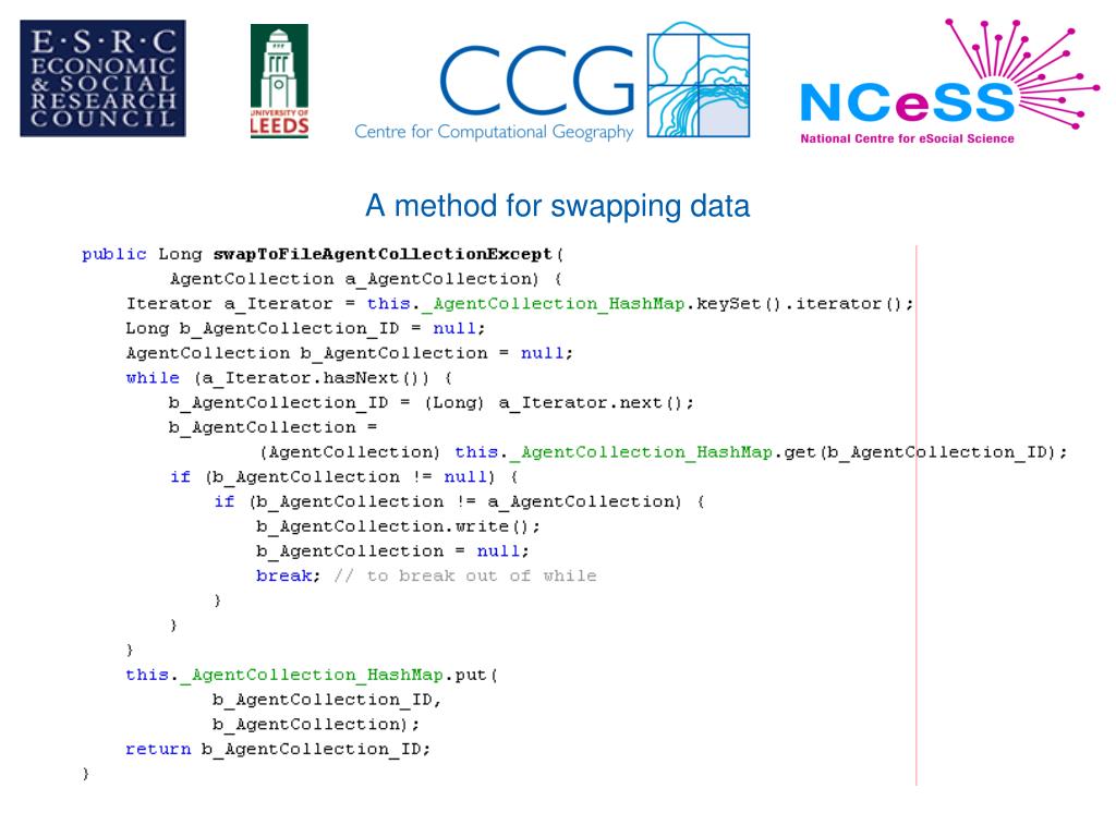Memory Handling • This is the crux of the paper I am presenting here • I use memory handling to scale my model so I can run with billions of agents on an average machine • Warning, the next few slides show Java code and I shall try to explain them so you can all understand
