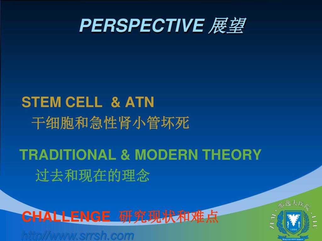 PERSPECTIVE 展望 STEM CELL & ATN 干细胞和急性肾小管坏死 TRADITIONAL & MODERN THEORY 过去和现在的理念 CHALLENGE 研究现状和难点