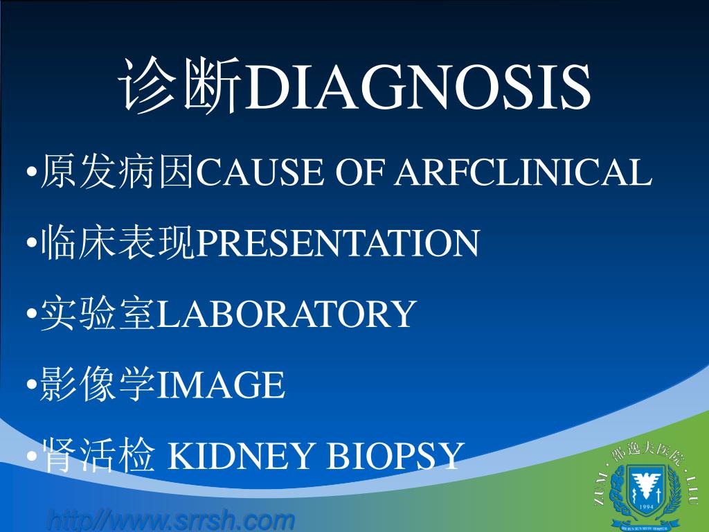 诊断DIAGNOSIS • 原发病因CAUSE OF ARFCLINICAL • 临床表现PRESENTATION • 实验室LABORATORY • 影像学IMAGE • 肾活检 KIDNEY BIOPSY