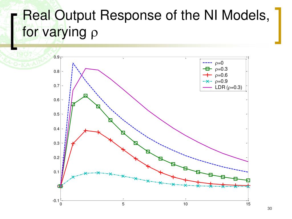 The Noisy Information (NI) Model • Woodford (2003) assumes monopolistic competitive market in Lucas’s (1973) island model to generate inflation inertia • Firms have heterogeneous subjective perceptions of current conditions (imperfect common knowledge) • Inflation responds sluggishly to monetary shock because higher-order expectations are slow to adjust
