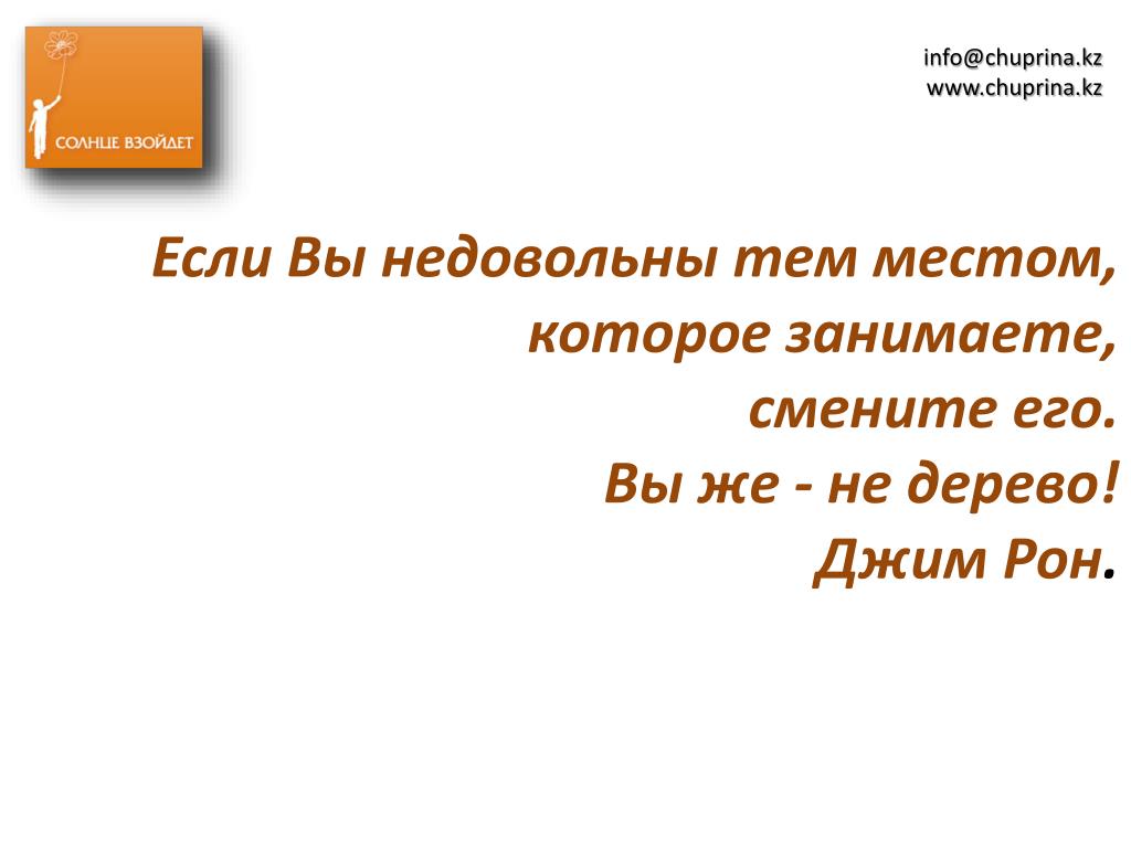 info@chuprina.kz www.chuprina.kz Если Вы недовольны тем местом, которое занимаете, смените его. Вы же - не дерево! Джим Рон.