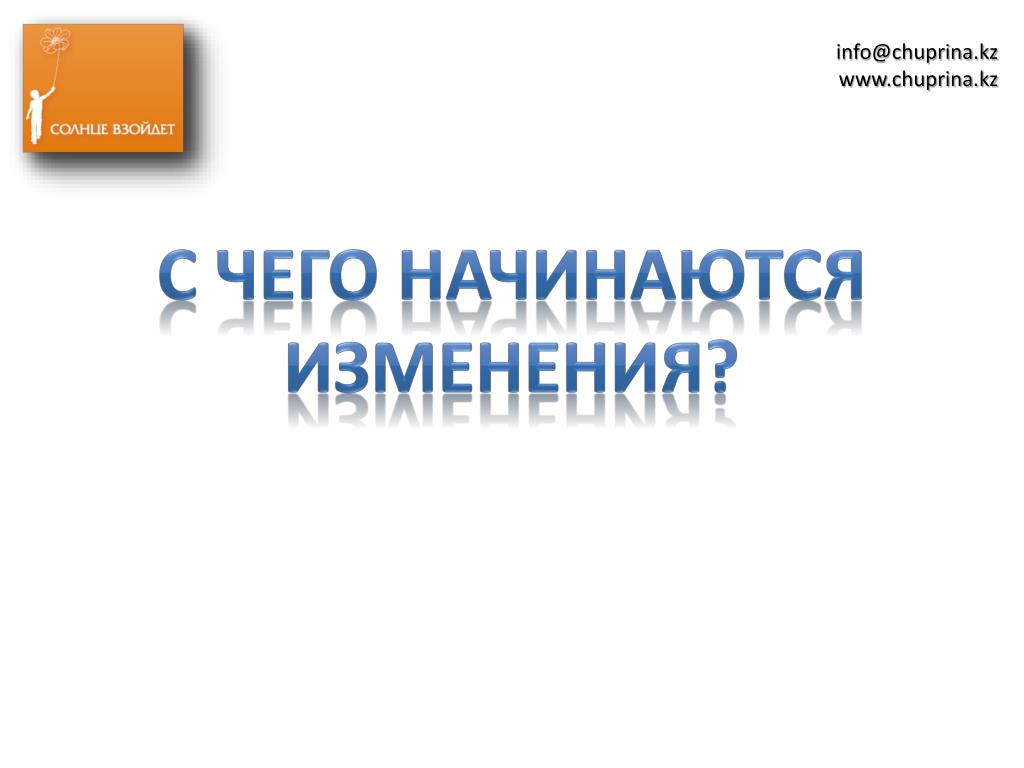 info@chuprina.kz www.chuprina.kz С ЧЕГО НАЧИНАЮТСЯ ИЗМЕНЕНИЯ?
