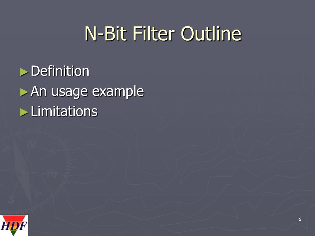 N-Bit Filter Outline • Definition • An usage example • Limitations