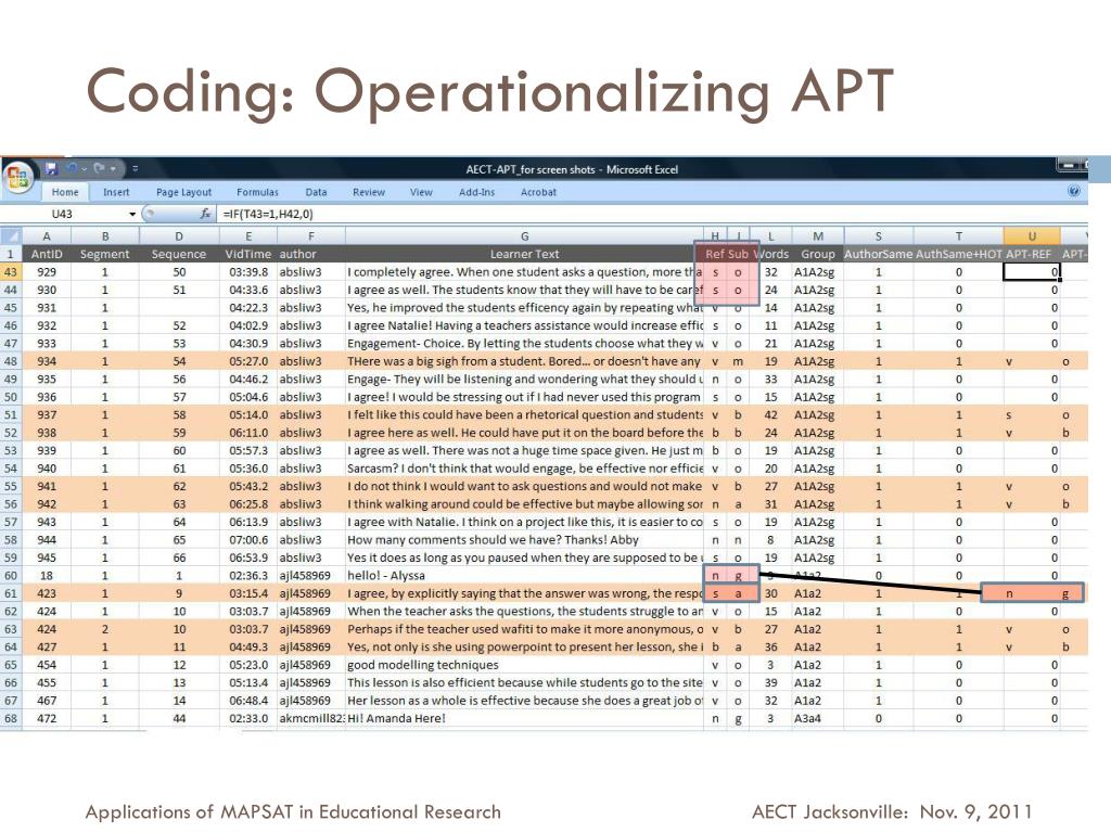 Coding: Operationalizing APT Applications of MAPSAT in Educational Research