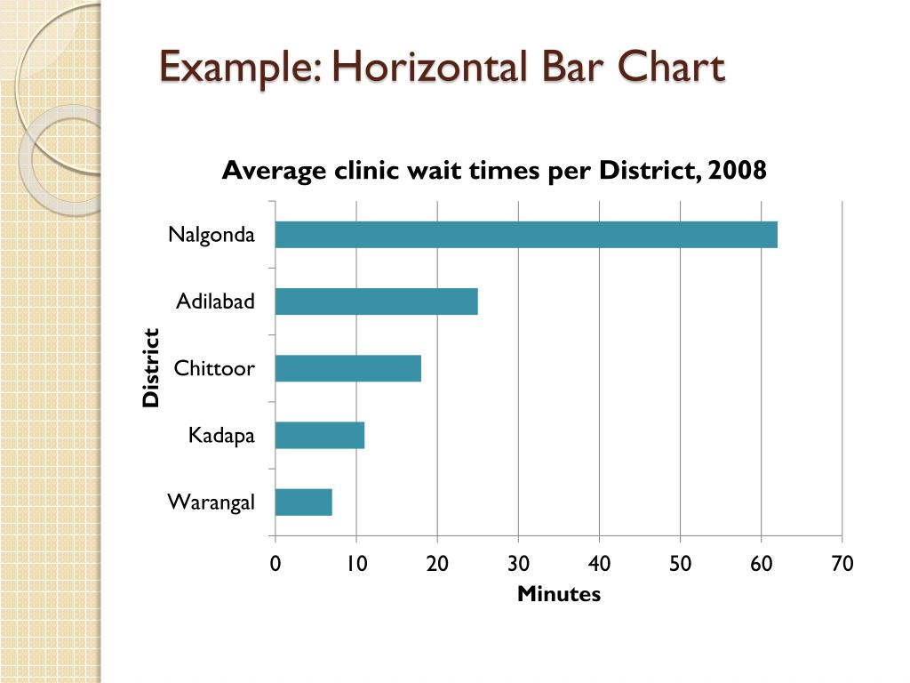Bar Charts • Method of organizing and illustrating data using only one coordinate • Quick way to show big differences in data • Bar charts are used to compare data and show relationships • Best used for comparing data with discrete categories • Gender, race, marital status and trained and untrained