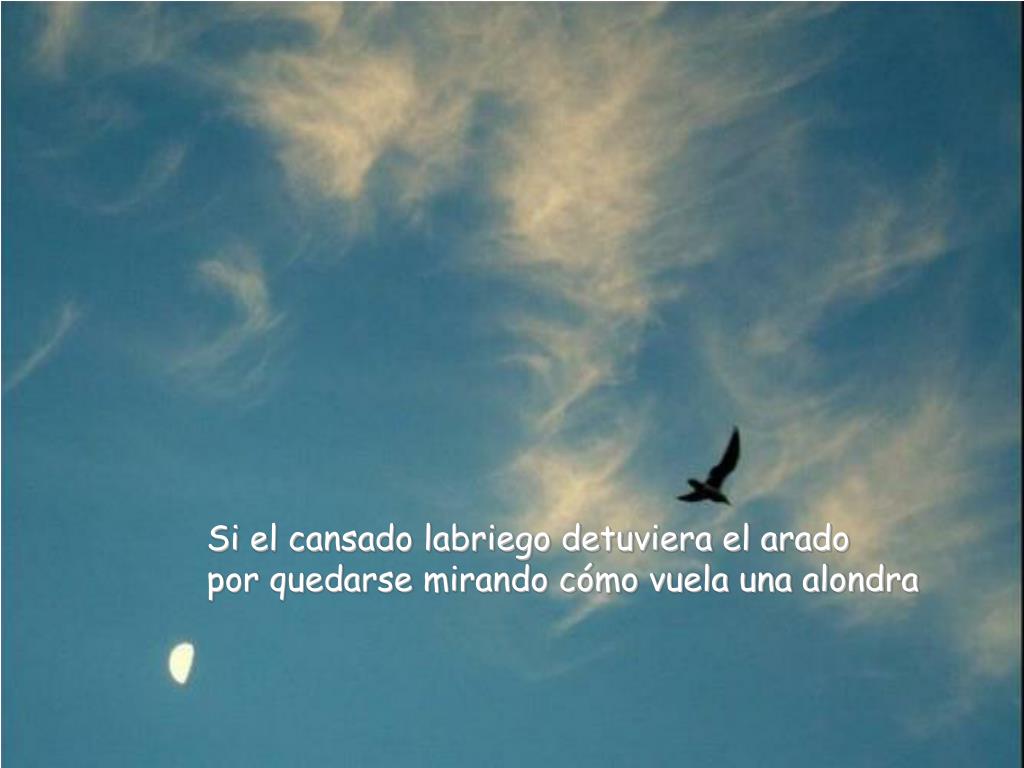 Si el cansado labriego detuviera el aradopor quedarse mirando cómo vuela una alondra