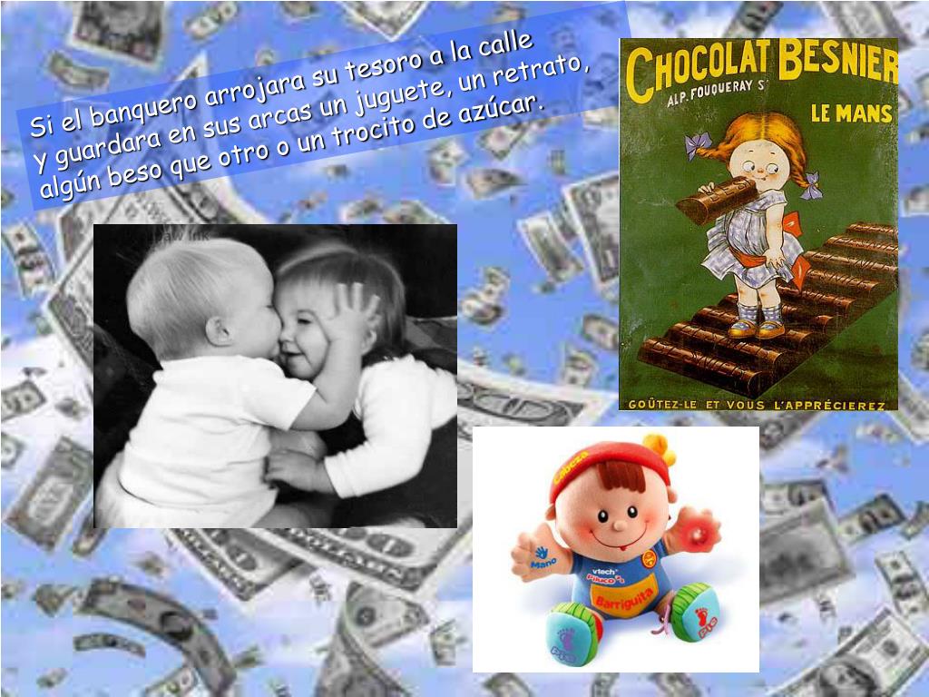 Si el banquero arrojara su tesoro a la calle y guardara en sus arcas un juguete, un retrato,algún beso que otro o un trocito de azúcar.
