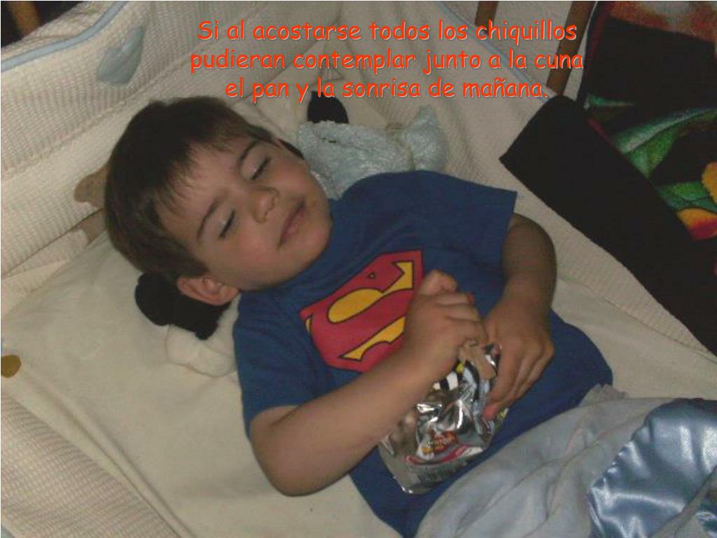 Si al acostarse todos los chiquillospudieran contemplar junto a la cunael pan y la sonrisa de mañana.