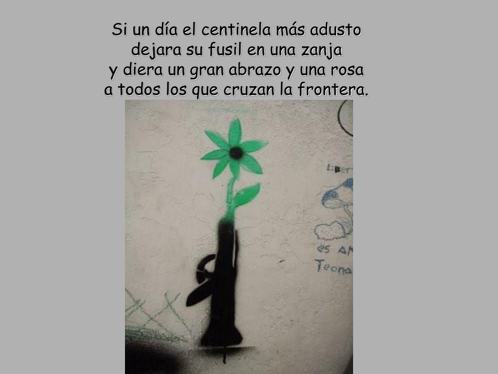 Si un día el centinela más adustodejara su fusil en una zanjay diera un gran abrazo y una rosaa todos los que cruzan la frontera.