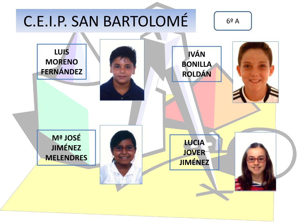 C.E.I.P. SAN BARTOLOMÉ 6º A LUIS MORENO FERNÁNDEZ IVÁN BONILLA ROLDÁN Mª JOSÉ JIMÉNEZ MELENDRES LUCIA JOVER JIMÉNEZ