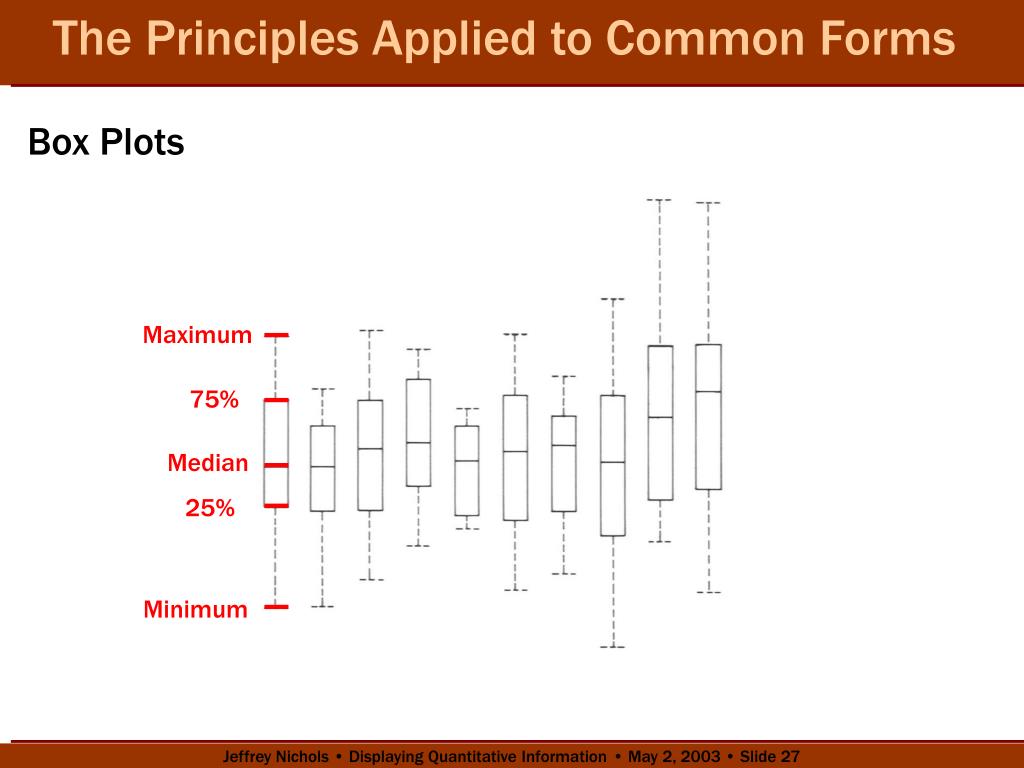 The Principles Applied to Common Forms Box Plots Maximum 75% Median 25% Minimum