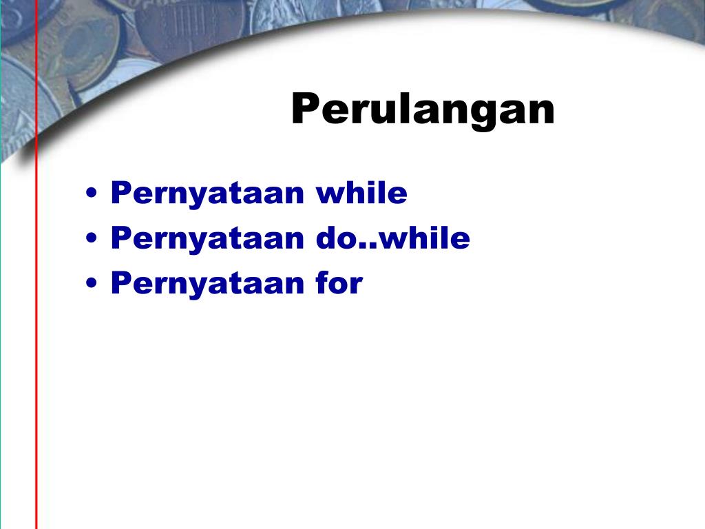 Perulangan • Pernyataan while • Pernyataan do..while • Pernyataan for