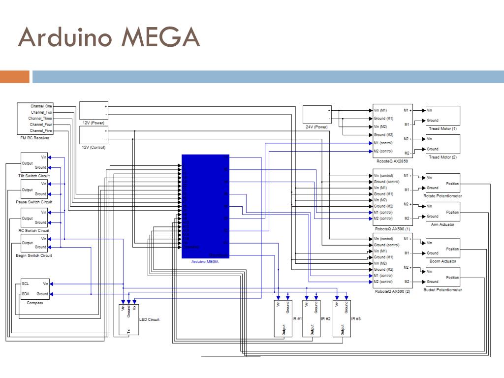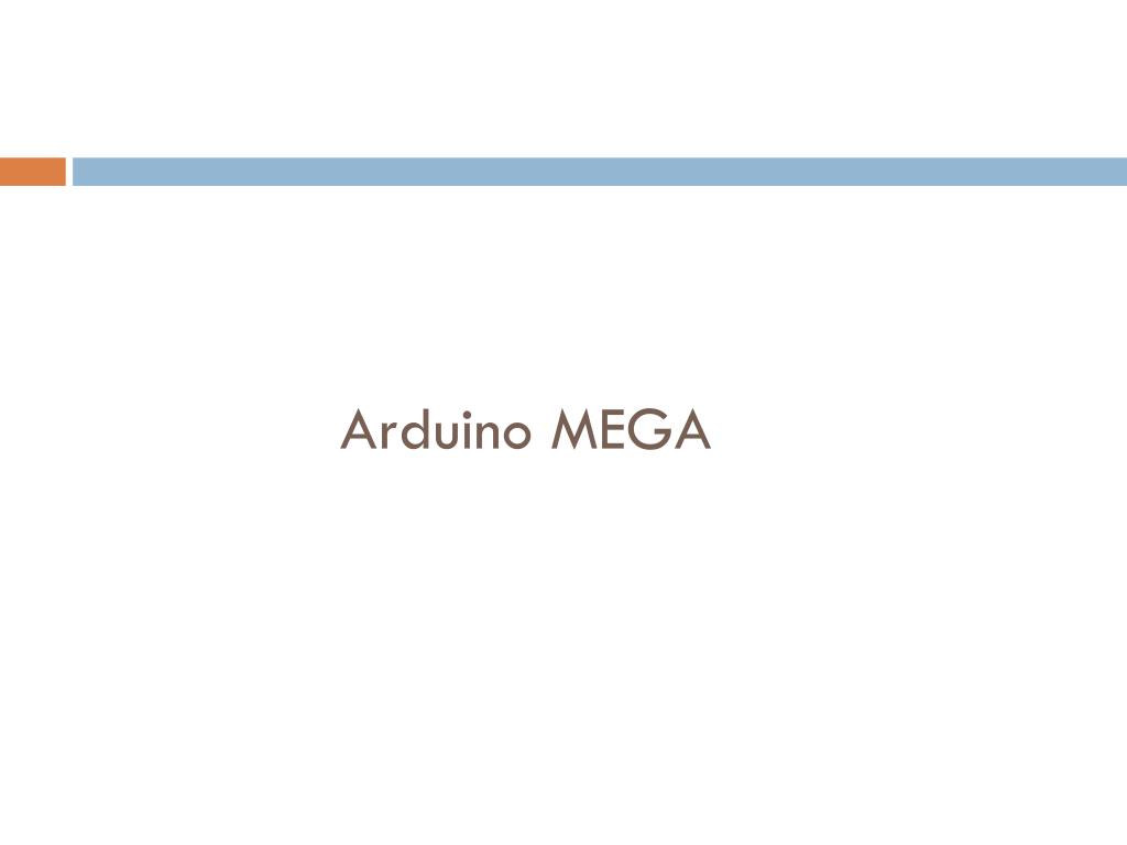 Arduino MEGA http://rhinoart.info/archives/101 • 16 MHz processor • 128 KB flash memory • 10 bit ADCs • 54 I/O pins • 13 PWM outputs • 4 serial ports • I2C