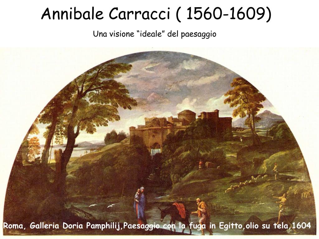 Annibale Carracci ( 1560-1609) Una visione “ideale” del paesaggio Roma, Galleria Doria Pamphilij,Paesaggio con la fuga in Egitto,olio su tela,1604