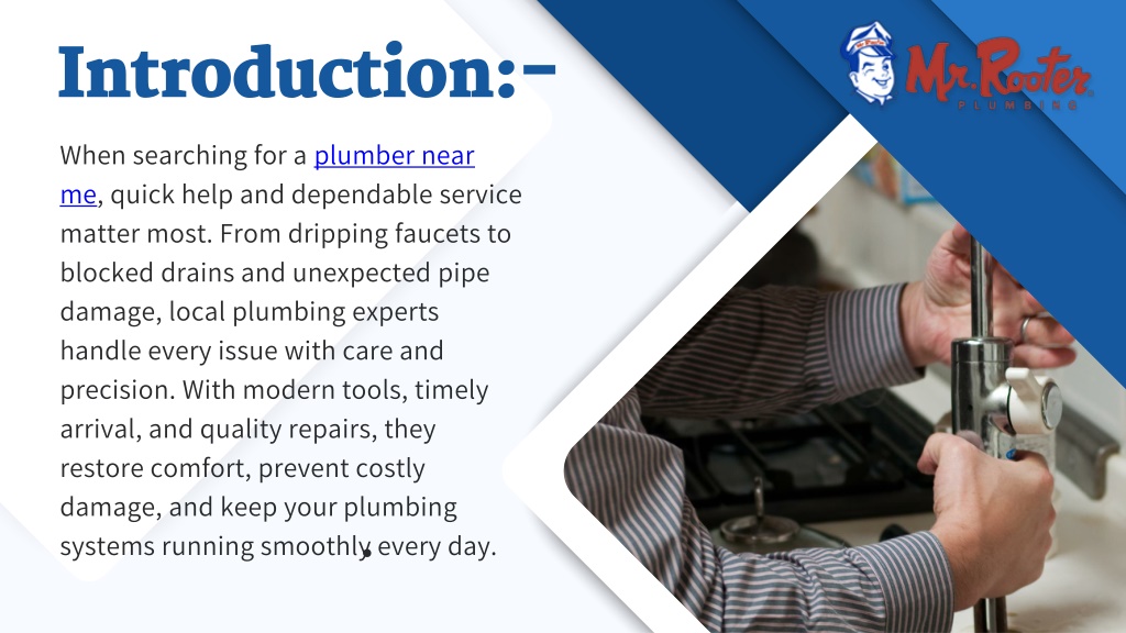 Introduction:- When searching for a plumber near me, quick help and dependable service matter most. From dripping faucets to blocked drains and unexpected pipe damage, local plumbing experts handle every issue with care and precision. With modern tools, timely arrival, and quality repairs, they restore comfort, prevent costly damage, and keep your plumbing systems running smoothly every day.