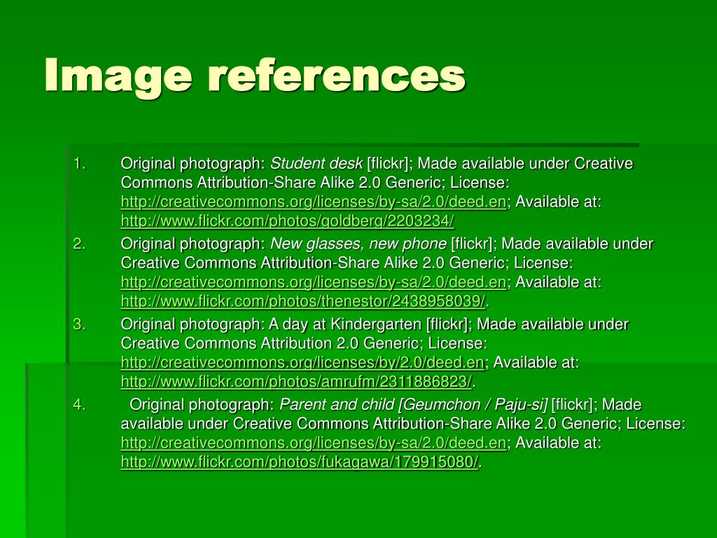 Image references • Original photograph: Student desk [flickr]; Made available under Creative Commons Attribution-Share Alike 2.0 Generic; License: http://creativecommons.org/licenses/by-sa/2.0/deed.en; Available at: http://www.flickr.com/photos/goldberg/2203234/ • Original photograph: New glasses, new phone [flickr]; Made available under Creative Commons Attribution-Share Alike 2.0 Generic; License: http://creativecommons.org/licenses/by-sa/2.0/deed.en; Available at: http://www.flickr.com/photos/thenestor/2438958039/. • Original photograph: A day at Kindergarten [flickr]; Made available under Creative Commons Attribution 2.0 Generic; License: http://creativecommons.org/licenses/by/2.0/deed.en; Available at: http://www.flickr.com/photos/amrufm/2311886823/. • Original photograph: Parent and child [Geumchon / Paju-si] [flickr]; Made available under Creative Commons Attribution-Share Alike 2.0 Generic; License: http://creativecommons.org/licenses/by-sa/2.0/deed.en; Available at: http://www.flickr.com/photos/fukagawa/179915080/.