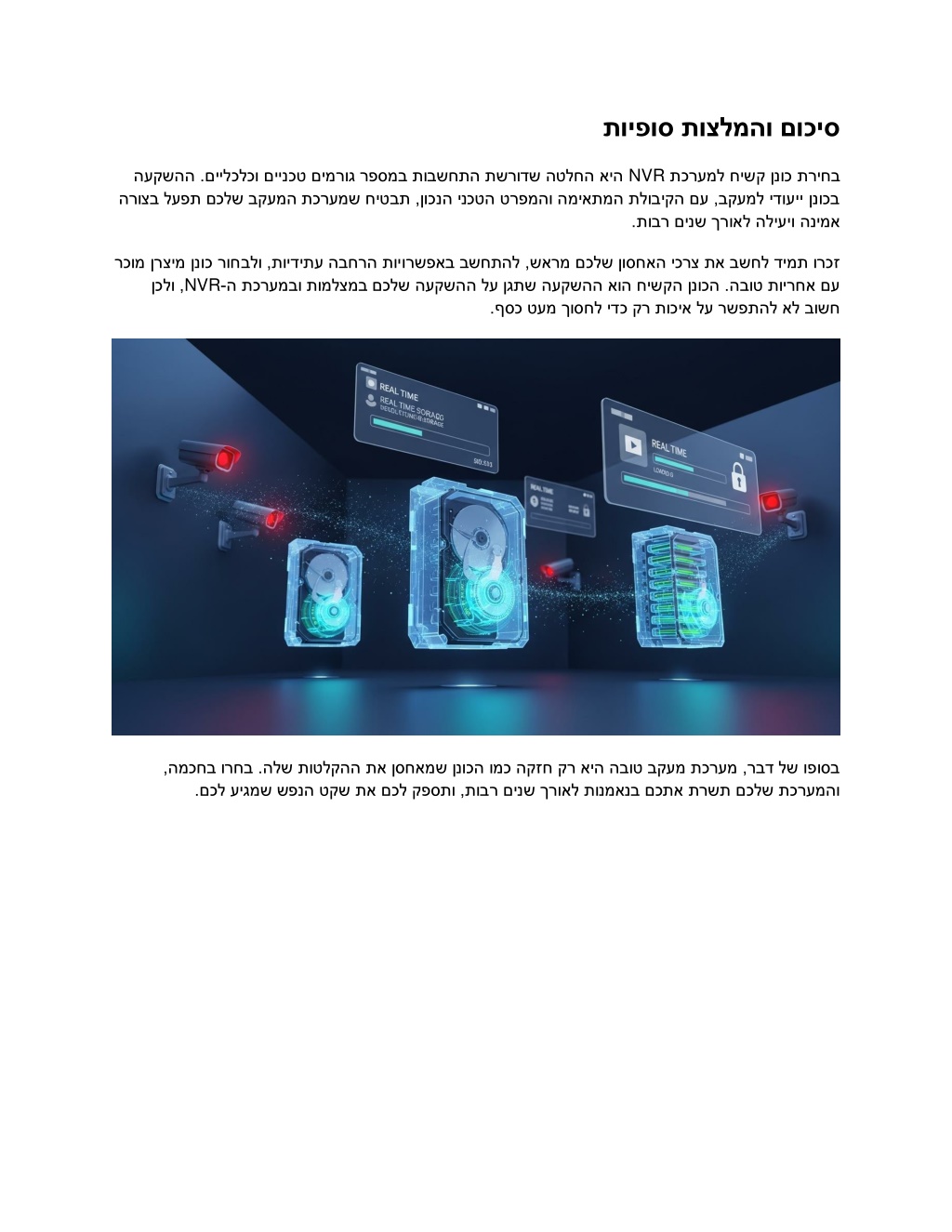 תויפוס תוצלמהו םוכיס תכרעמל חישק NVR העקשהה .םיילכלכו םיינכט םימרוג רפסמב תובשחתה תשרודש הטלחה איה הרוצב לעפת םכלש בקעמה תכרעמש חיטבת ,ןוכנה ינכטה טרפמהו המיאתמה תלוביקה םע ,בקעמל ידועיי ןנוכב ןנוכ תריחב .תובר םינש ךרואל הליעיו הנימא רכומ ןרצימ ןנוכ רוחבלו ,תוידיתע הבחרה תוי ןכלו , ורשפאב בשחתהל ,שארמ םכלש ןוסחאה יכרצ תא בשחל דימת ורכז ה תכרעמבו תומלצמב םכלש העקשהה לע ןגתש העקשהה אוה חישקה ןנוכה .הבוט תוירחא םע - NVR .ףסכ טעמ ךוסחל ידכ קר תוכיא לע רשפתהל אל בושח ,המכחב ורחב .הלש תוטלקהה תא ןסחאמש ןנוכה ומכ הקזח קר איה הבוט בקעמ תכרעמ ,רבד לש ופוסב .םכל עיגמש שפנה טקש תא םכל קפסתו ,תובר םינש ךרואל תונמאנב םכתא תרשת םכלש תכרעמהו
