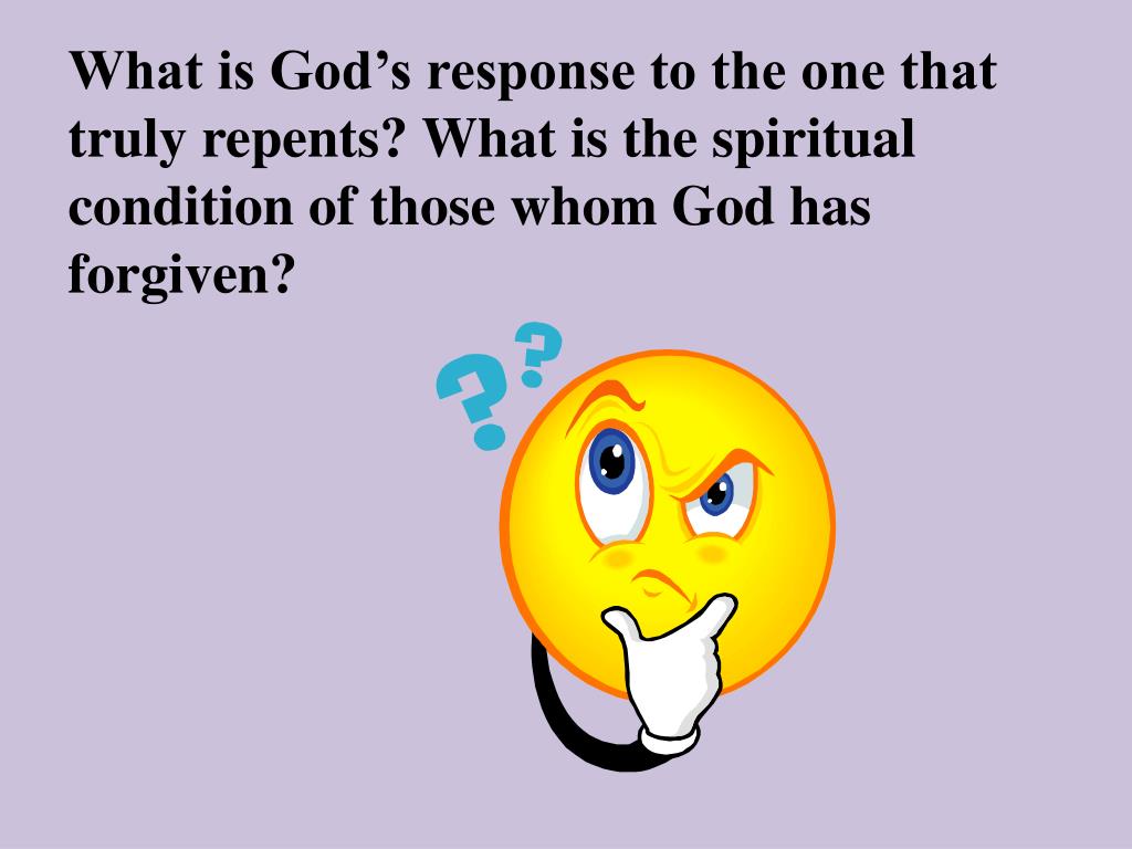 What is God’s response to the one that truly repents? What is the spiritual condition of those whom God has forgiven?