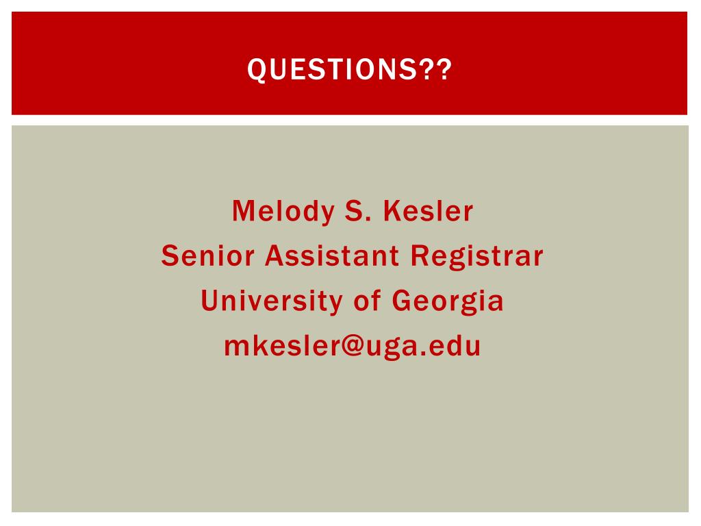 Questions?? Melody S. Kesler Senior Assistant Registrar University of Georgia mkesler@uga.edu