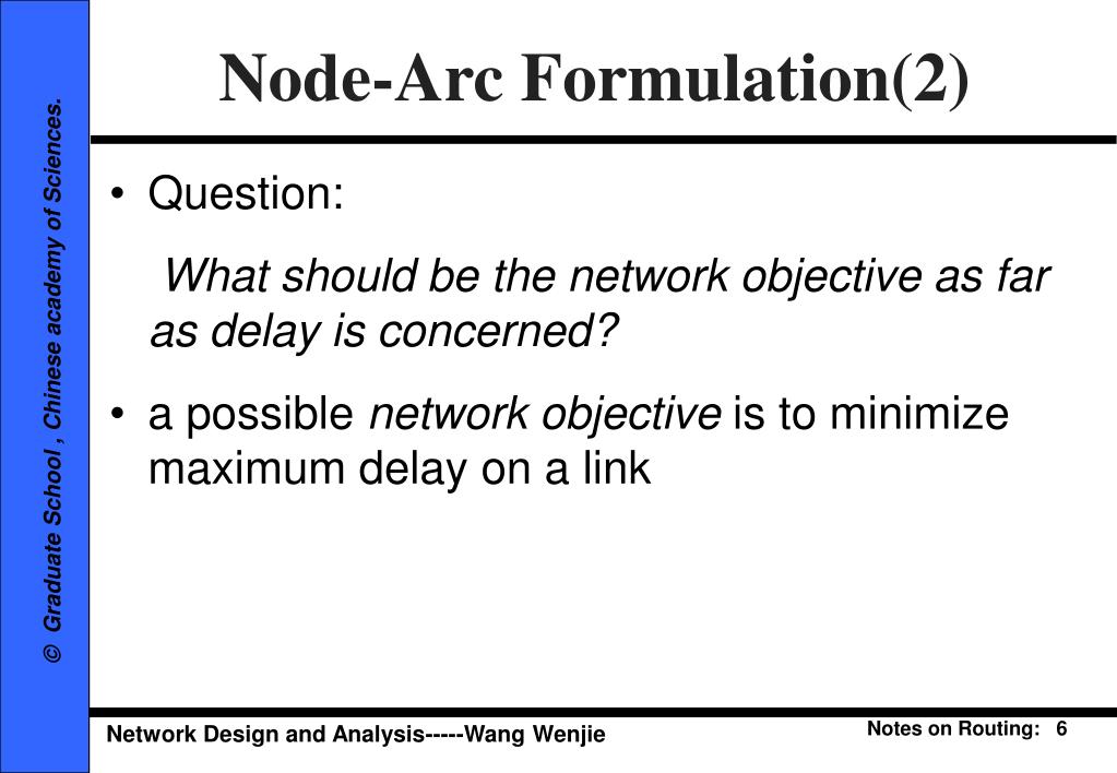 Node-Arc Formulation(2) • Question: What should be the network objective as far as delay is concerned? • a possible network objective is to minimize maximum delay on a link