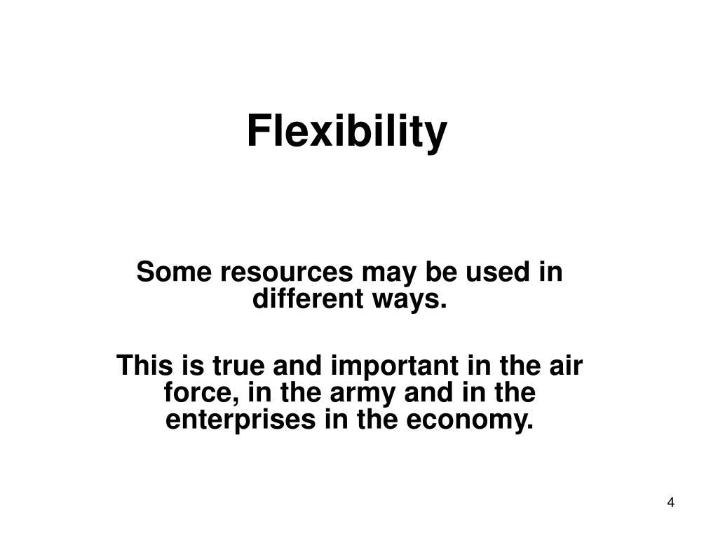 Flexibility Some resources may be used in different ways. This is true and important in the air force, in the army and in the enterprises in the economy.