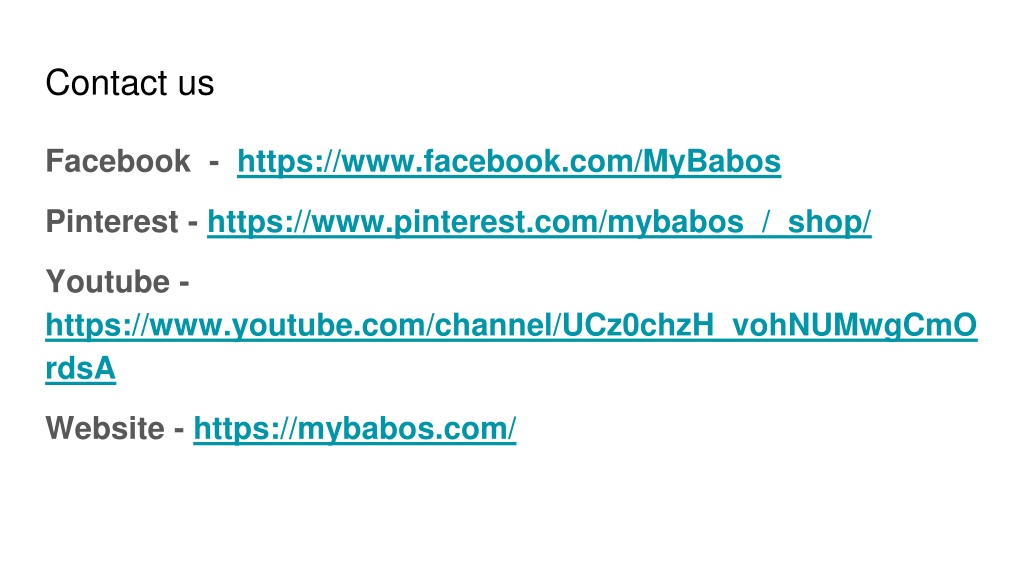 Contact us Facebook - https://www.facebook.com/MyBabos Pinterest - https://www.pinterest.com/mybabos_/_shop/ Youtube - https://www.youtube.com/channel/UCz0chzH_vohNUMwgCmOrdsA Website - https://mybabos.com/