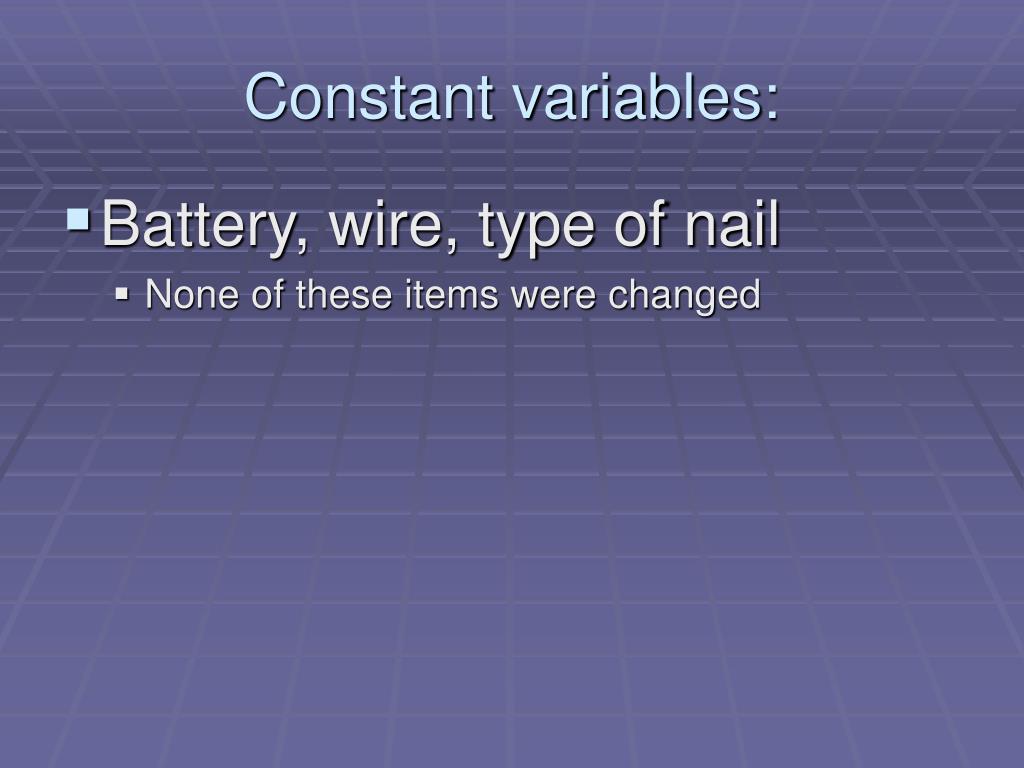 Constant variables: • Battery, wire, type of nail • None of these items were changed