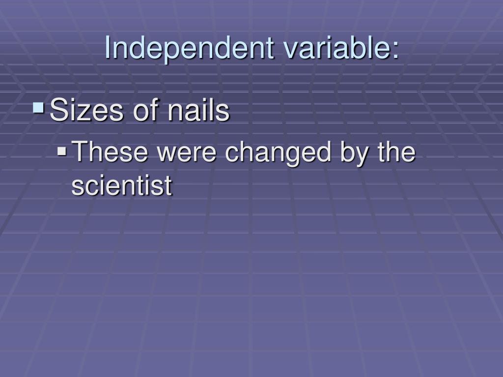 Independent variable: • Sizes of nails • These were changed by the scientist