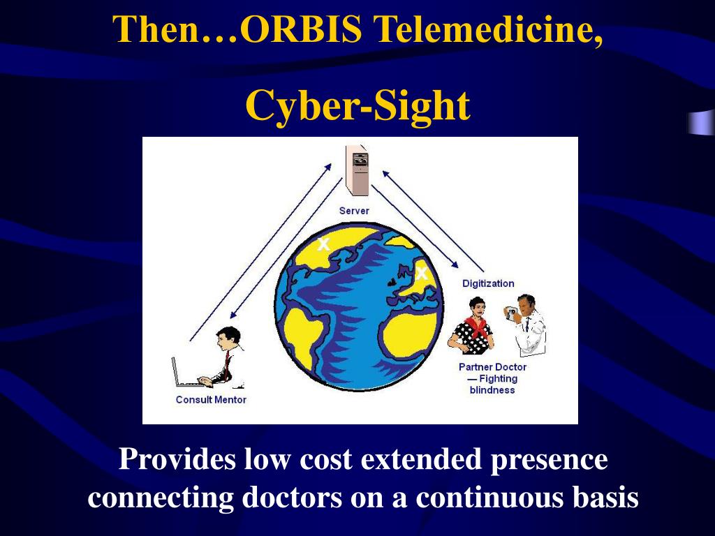 Then…ORBIS Telemedicine, Cyber-Sight Provides low cost extended presence connecting doctors on a continuous basis