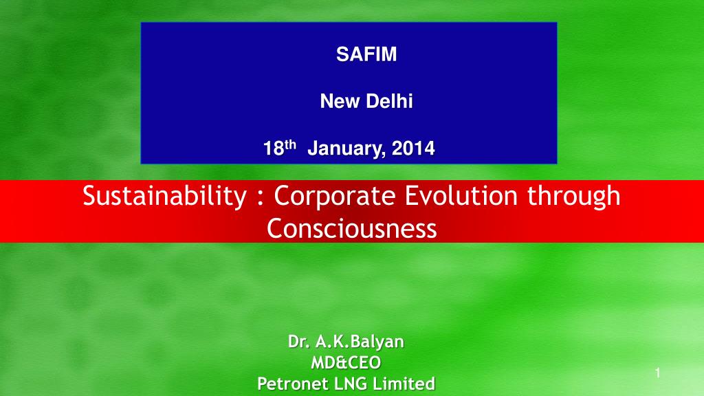 SAFIM New Delhi 18 th January, 2014 . Sustainability : Corporate Evolution through Consciousness. Dr. A.K.Balyan MD&CEO Petronet LNG Limited. Do We Need a New Business Paradigm?.