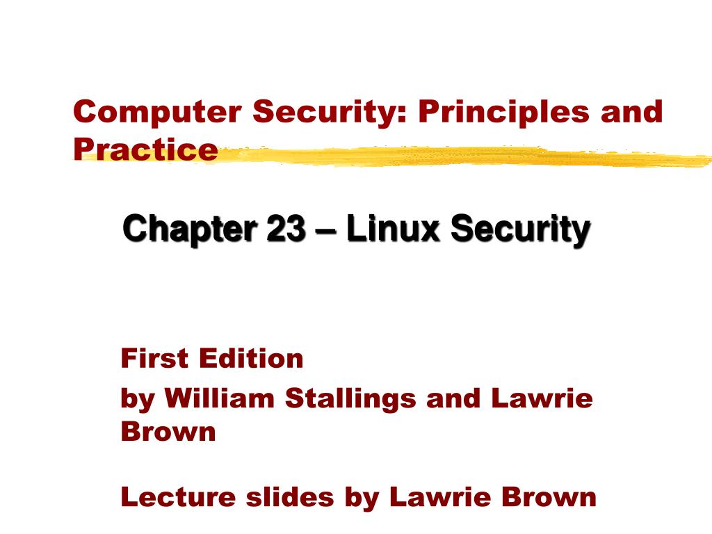 Computer Security: Principles and Practice Chapter 23 – Linux Security First Edition by William Stallings and Lawrie Brown Lecture slides by Lawrie Brown