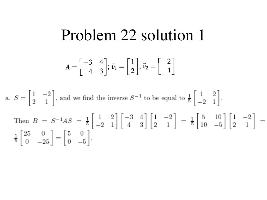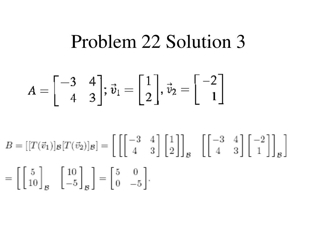 Problem 22 Find the matrix B of the linear transformation T(x) = Ax with Respect to the basis B = (v1,v2) For practice solve the problem in 3 ways; a) use the formula B = S-1 AS b) Use a commutative diagram c) And construct B column by column