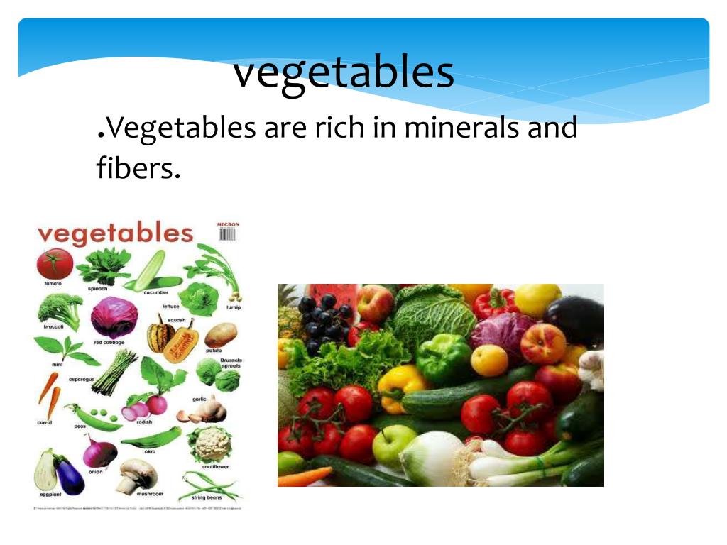 vegetables .Vegetables are rich in minerals and fibers.