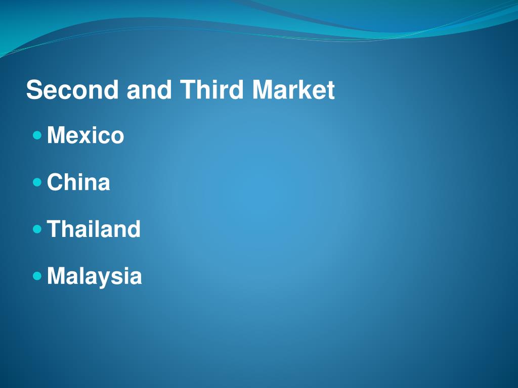 Second and Third Market • Mexico • China • Thailand • Malaysia