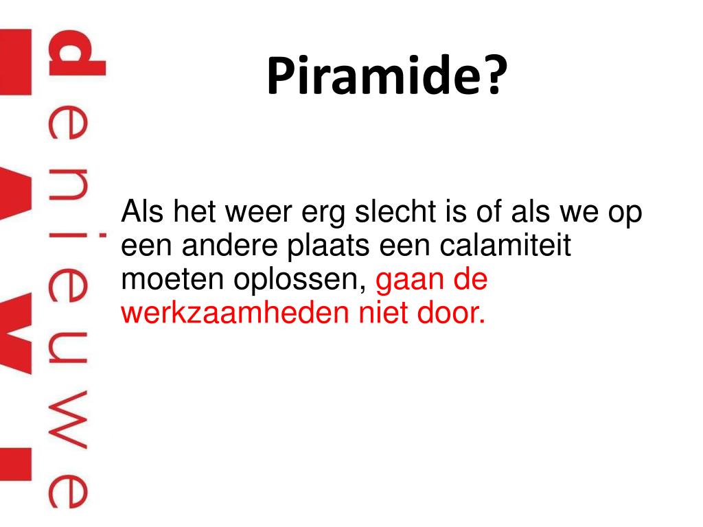 Piramide! De werkzaamheden gaan niet door, als het weer erg slecht is of als we op een andere plaats een calamiteit moeten oplossen.