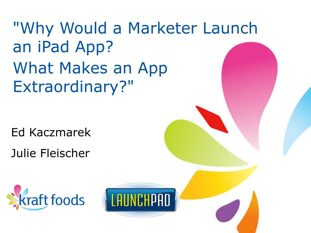 "Why Would a Marketer Launch an iPad App? What Makes an App Extraordinary?" Ed Kaczmarek Julie Fleischer