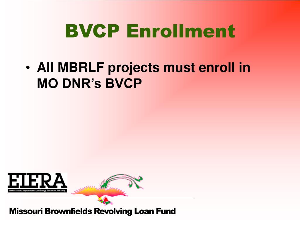 BVCP Enrollment • All MBRLF projects must enroll in MO DNR’s BVCP